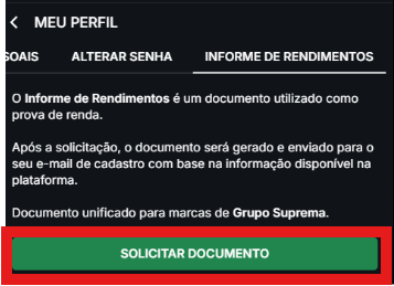 Clique em "Meu perfil", arraste para o lado e clique na opção "Informe de rendimentos";